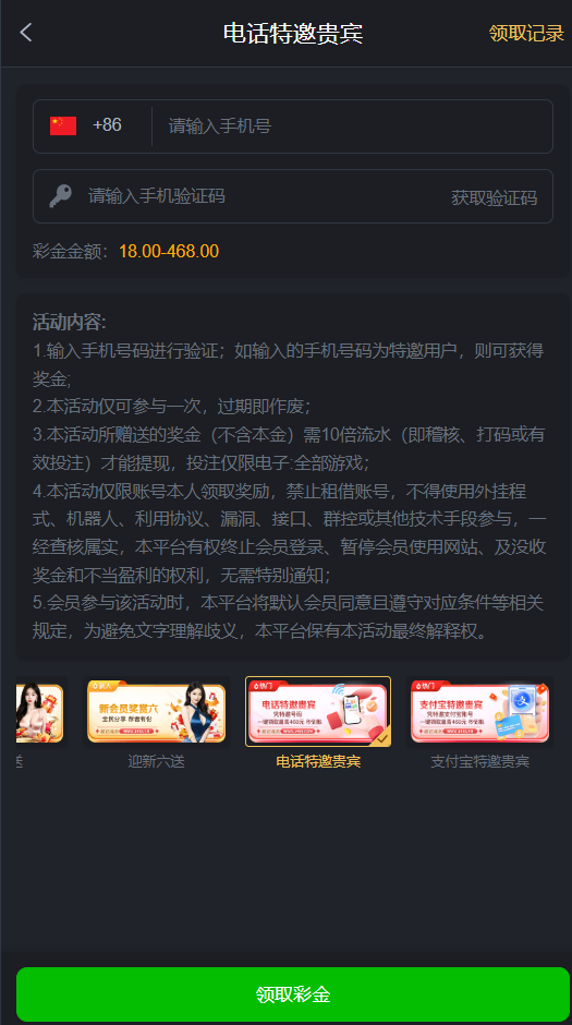 电话 支付宝特邀自助领取18-468,提现已经到账,有些有有些没可以试试没得勿喷